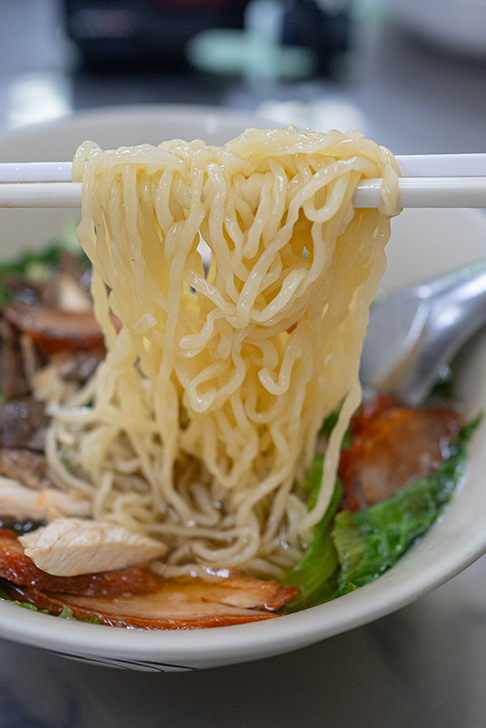 白っぽい麺は軽く縮れており、これもどこか日本のラーメンを思わせる佇まい。