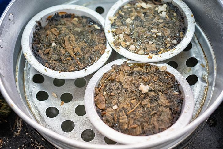 カオヨックとは、厚切りの豚バラ肉を一度揚げてから、醤油ベースのタレでトロトロになるまで蒸し上げた料理で、客家料理を代表する一品です。
