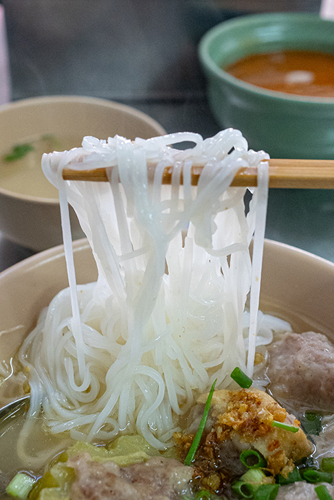 客家系のクイッティアオの特徴は、ルークチン(肉団子)へのこだわりです。