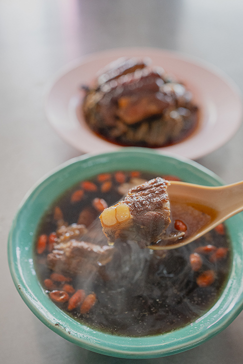 こちらのバクテーは、醤油の色合いが濃く、薬膳の香りがガツンと鼻を抜ける力強いスタイル。