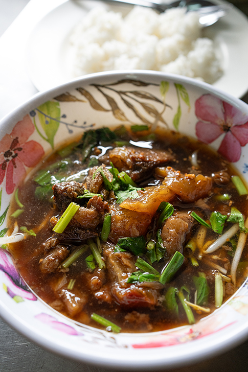 こちらのお店には、クイッティアオやガオラオの他、牛煮込みや豚煮込みをご飯に乗っけるメニューもあり。