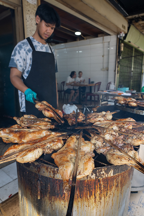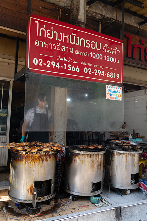 店構えは当時と変わらず、店頭では10羽以上のガイヤーンが炭火で調理されていました。