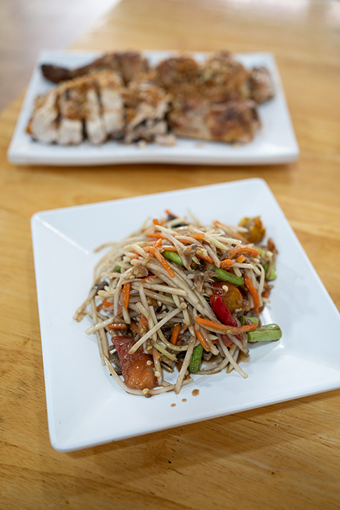 ヤムママームーヨー/ยำมาม่าหมูยอ 100.-