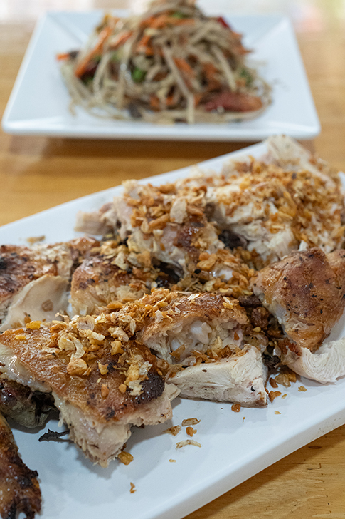 ガイヤーンナングローブ(クントゥア 半羽/テムトゥア 1羽 100.- / 200.- / ไก่ย่างหนังกรอบ(ครึ่งตัว / เต็มตัว)
