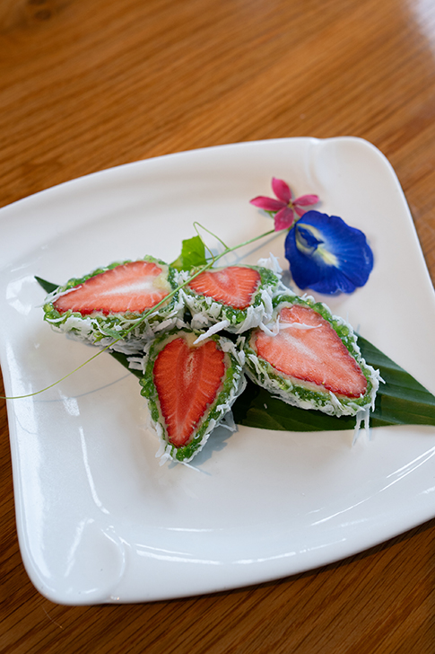 ヨックマニー・ソートサイ・ストロベリー(หยกมณีสอดไส้สตรอว์เบอร์รี)や、サンカヤー・ナムターンマイ & ワーンイェン・ソム(สังขยาน้ำตาลไหม้และหวานเย็นส้ม)