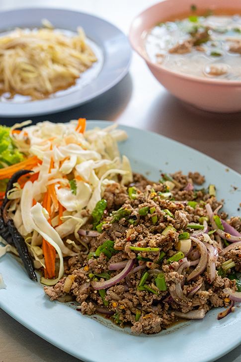 イサーンのラープとは異なり、やや濃いめでコクのある味付け。