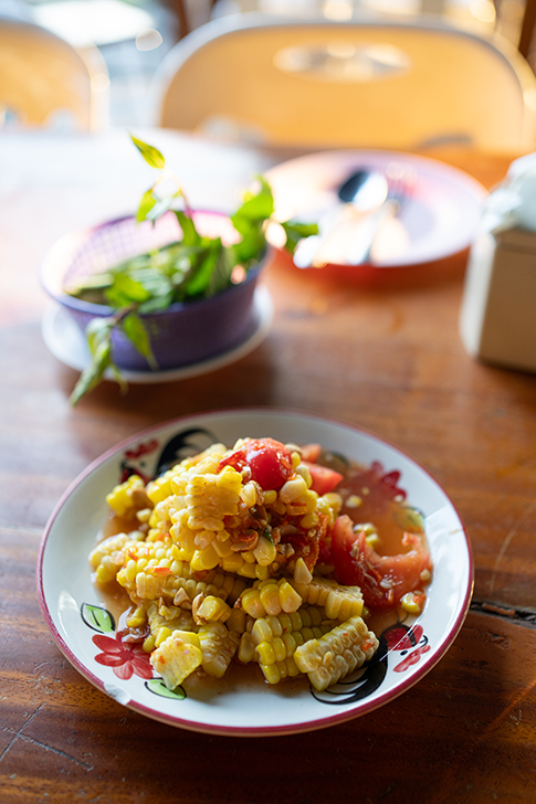 続いては、メニューに載っていない私のお気に入り、トウモロコシのソムタム「ソムタムカオポート」。