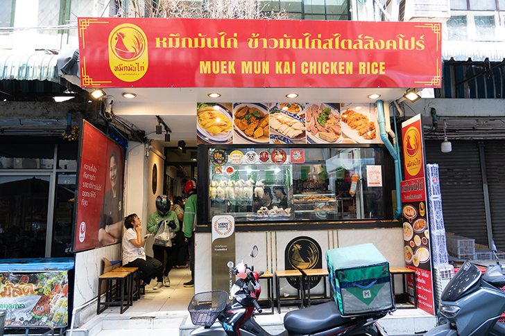 ペッブリー地区にある『ムックマンガイ・カオマンガイ・シンガポールスタイル(หมึกมันไก่ ข้าวมันไก่สไตล์สิงคโปร์)』。