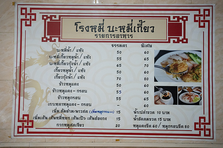 バミー ナーム / ヘン タマダー 50.- / ピセー 60.-/บะหมี่น้ำ/แห้ง ธรรมดา 50.- / พิเศษ 60.-