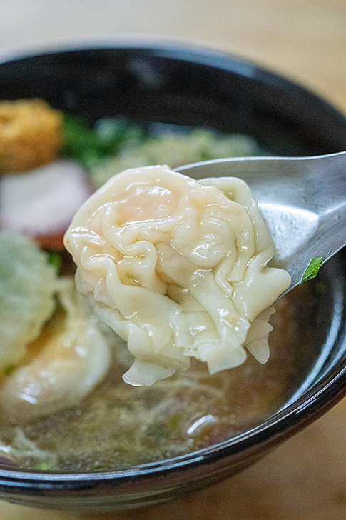 事前に仕入れた情報では、「エビ入りワンタン」が評判のようだったので、えびワンタン入りバミーを注文。