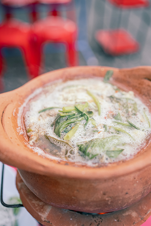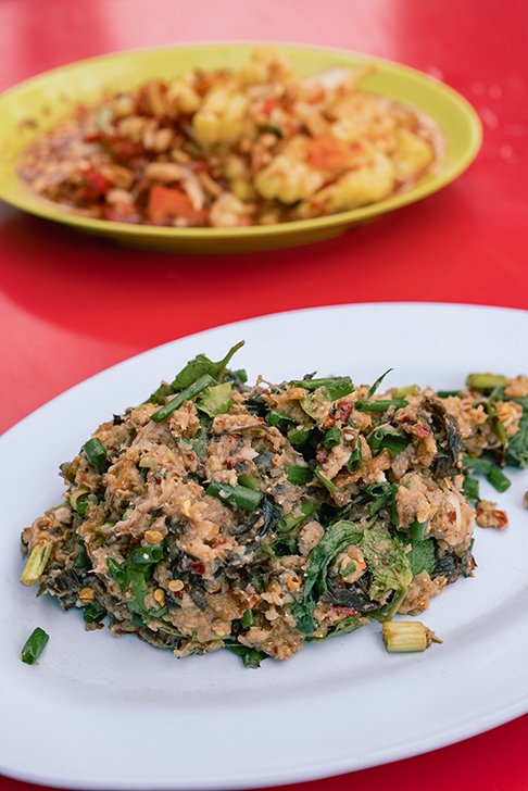 焼いたなまずをほぐして和えた一品ですが、特有のねっとりとした食感と、ハーブや炒り米粉の香ばしさが絶妙なバランス。